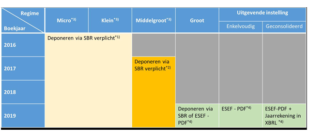 Het besluit dat wordt vergezeld met een nota van toelichting richt zich in eerste instantie op de rechtspersonen tot middelgroot. Micro-entiteiten en kleine rechtspersonen, waarvan het boekjaar ingaat op of na 1 januari 2016, moeten hun publicatiestukken vanaf dat boekjaar voortaan op elektronische wijze deponeren. Dezelfde verplichting geldt ook voor middelgrote rechtspersonen, maar dan als het boekjaar op of na 1 januari 2017 ingaat.