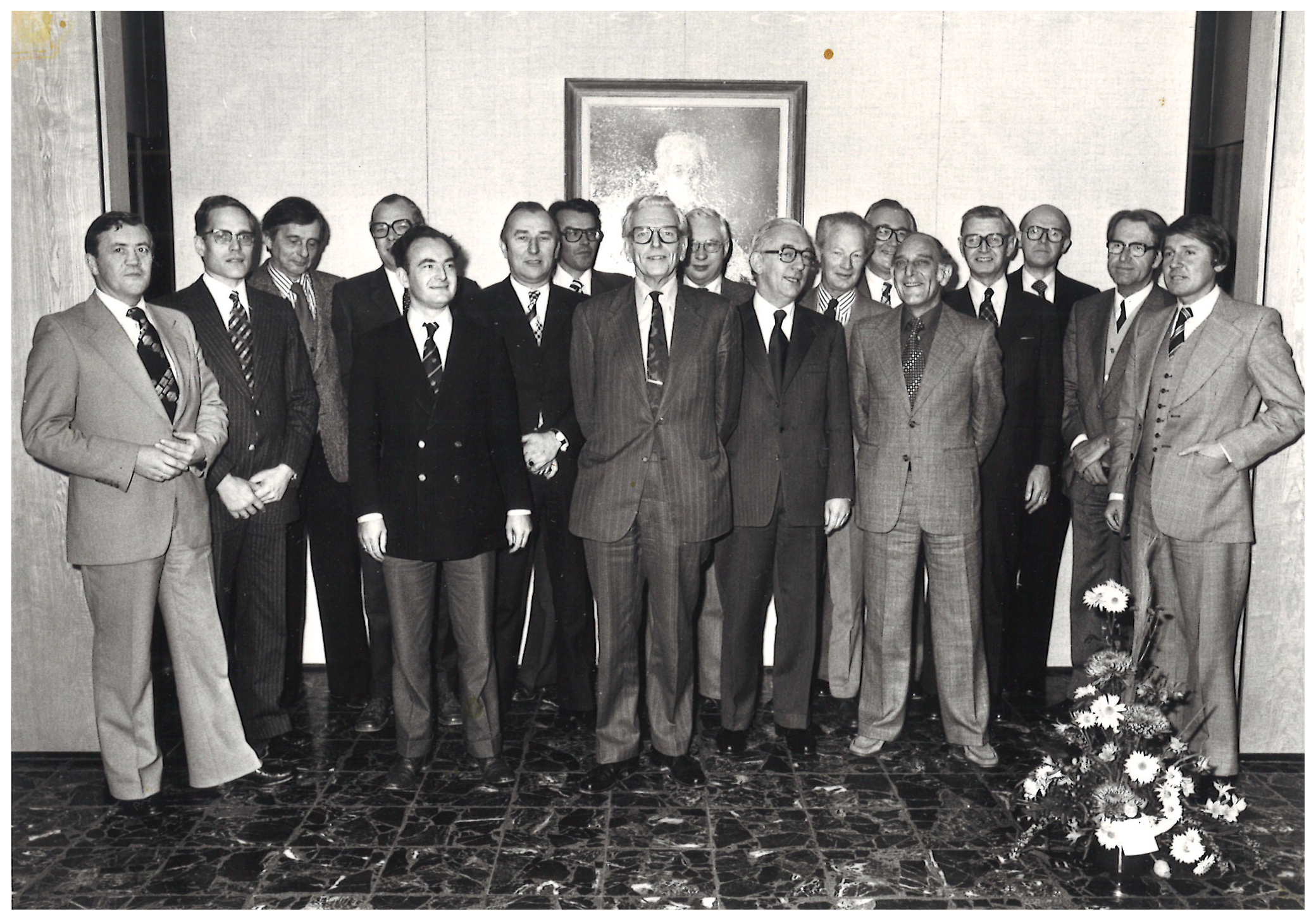 Het NIVRA-bestuur in 1976, met algemeen directeur Henk Volten geheel rechts.